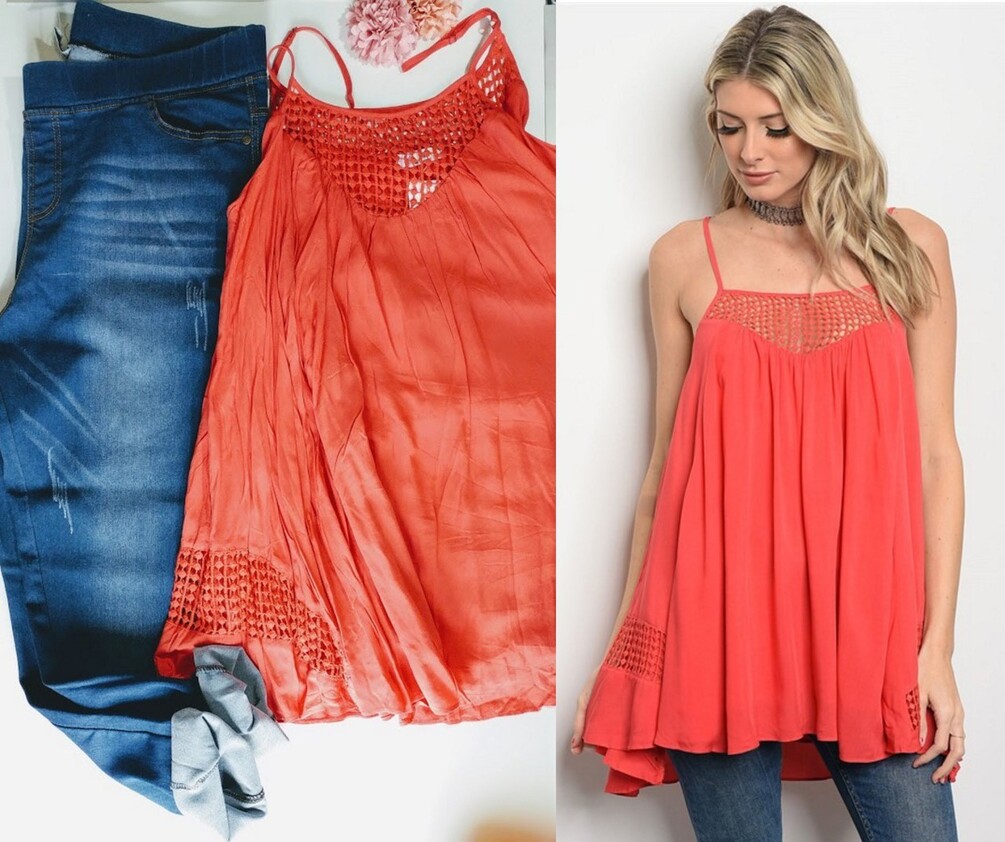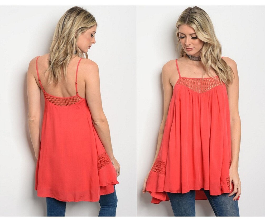 Dark Orange Adjustable Tank Toplaughingflamingo Loose and fully lined. Crochet detail at neckline and sides. Spaghetti straps are adjustable. 100% rayon $2323usdMedium1 left$2323usdLarge1 left223usdI want this!Add to wishlist New wishlistShareShare on XShare on Facebook Copy linkCopy product URL